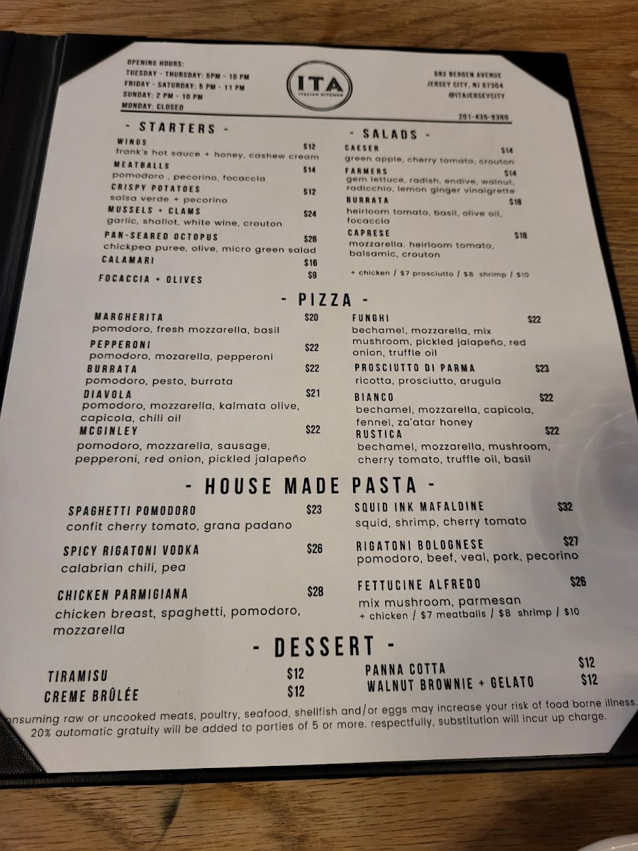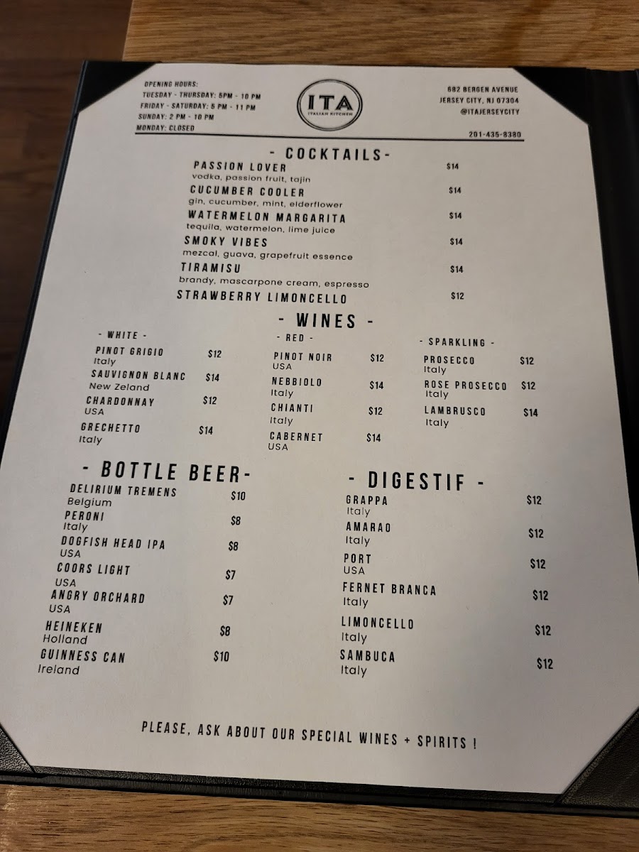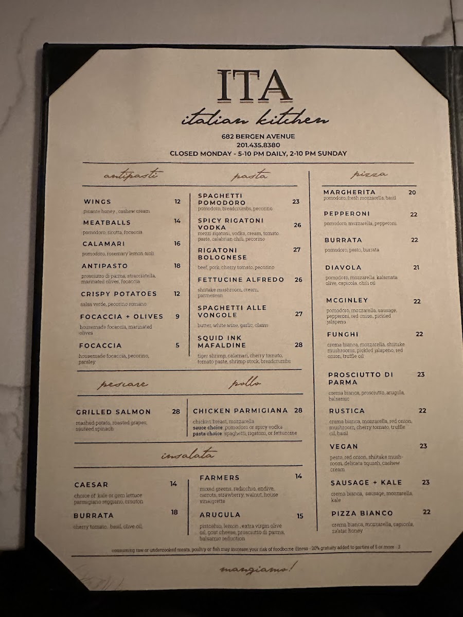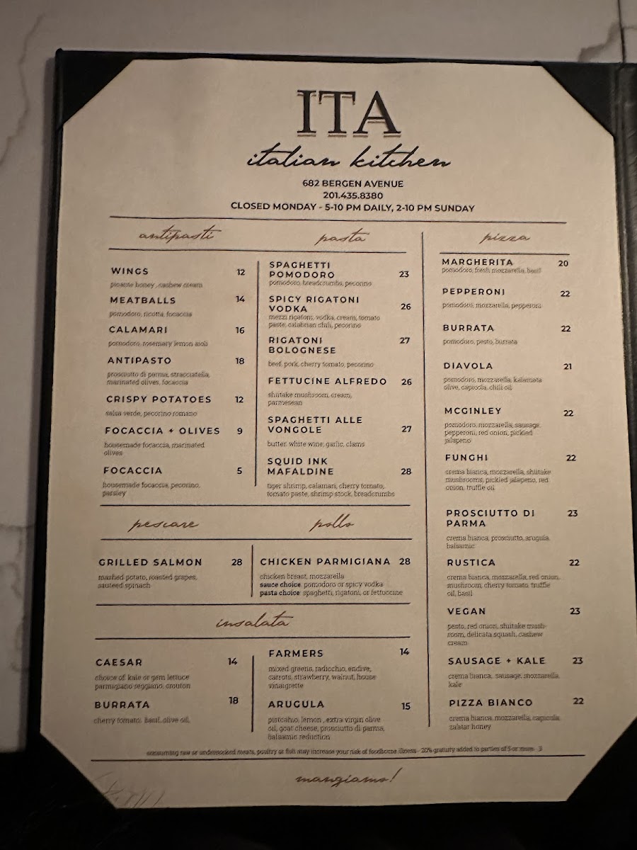 Welcome to ITA Italian Kitchen, a culinary gem located at 682 Bergen Ave, Jersey City, NJ 07304. This charming Italian restaurant invites you into a world where traditional recipes meet a vibrant dining atmosphere, perfect for any occasion whether it's a casual dinner or a special celebration.